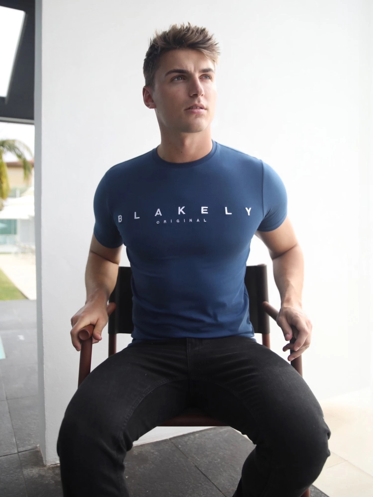 The Easton T-shirt in royal blue has a slim fit and short sleeves. It’s made from a soft cotton blend, which is both breathable and stretchy. The top features a crew neck collar and is finished with a large white embroidered Blakely logo on the chest.ย ย