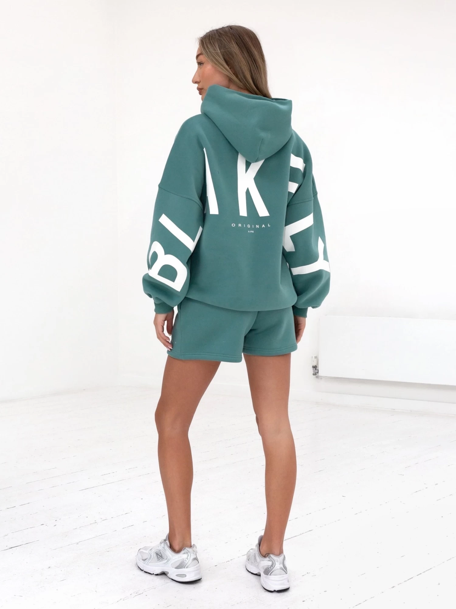 Your favourite Jogger shorts are now available in new summer colourways. Update your wardrobe with our Isabel Jogger Shorts in dusty teal, featuring our embroidered Blakely branding in flat white on the leg.