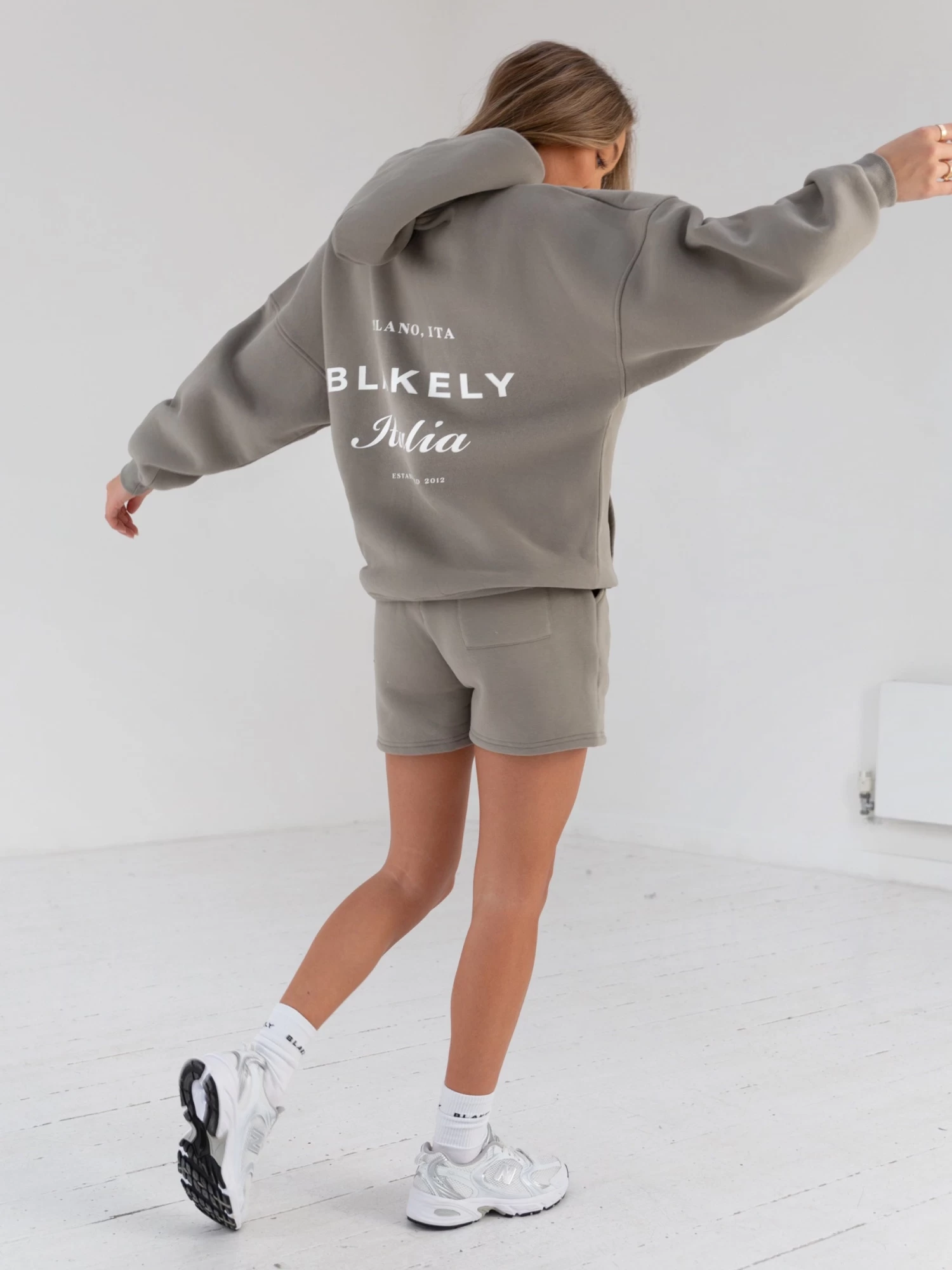 Part of this collection is our Italia Shorts in stone grey, they have been crafted from a soft cotton blend with a slight oversized fit. The shorts have an elasticated waistband and have been finished with our screen printed Italia graphic to the leg.