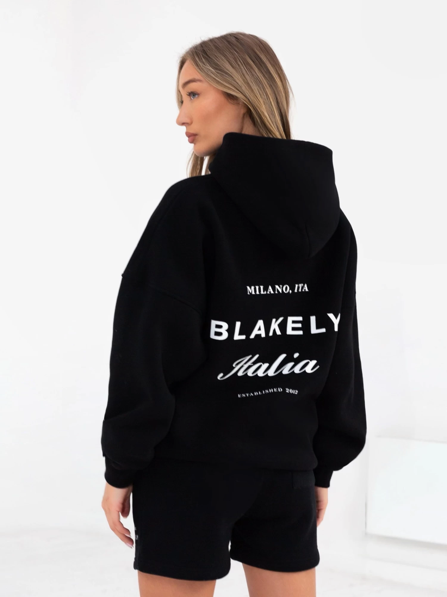 Part of this collection is our Italia Hoodie in black, it has been crafted from a soft cotton blend with an oversized fit. The hoodie has ribbed hem and cuffs and features our screen printed Italia graphic to the back and front.