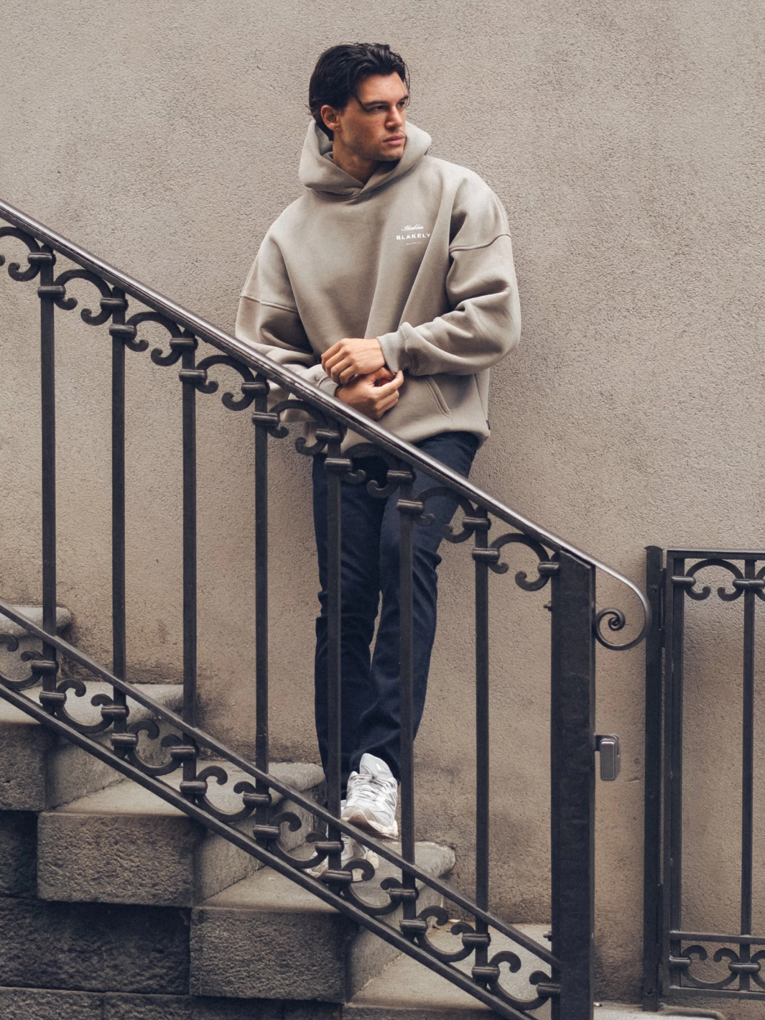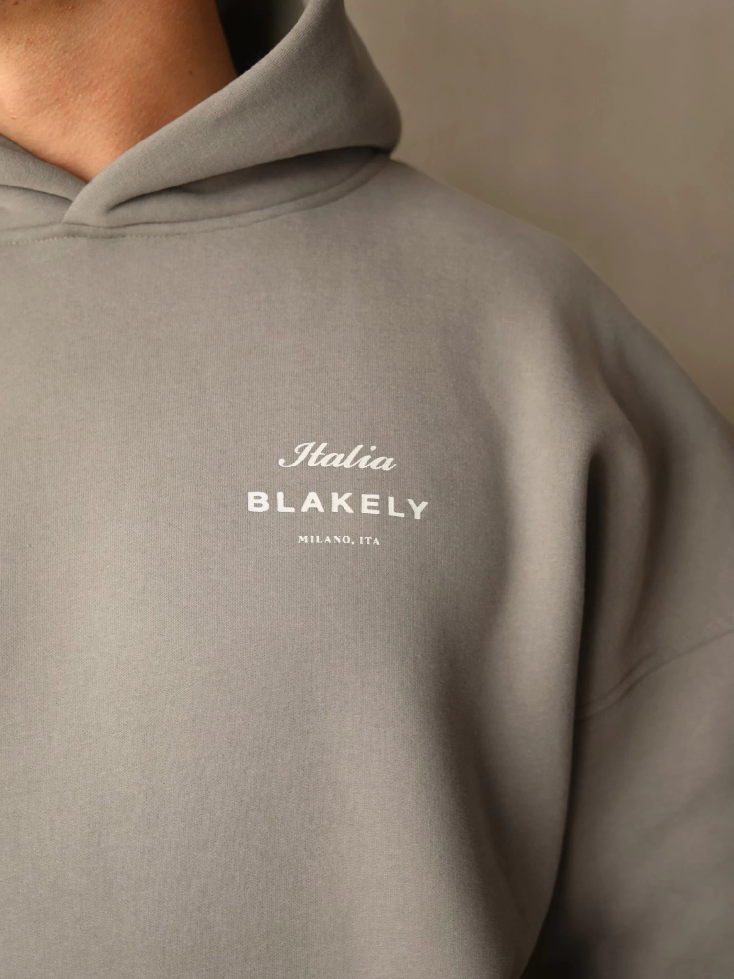 Part of this collection is our Italia Hoodie in stone grey, this hoodie is crafted from a soft cotton blend with a relaxed fit. It has ribbed hem and cuffs and features our screen printed Italia graphic to the back and front.