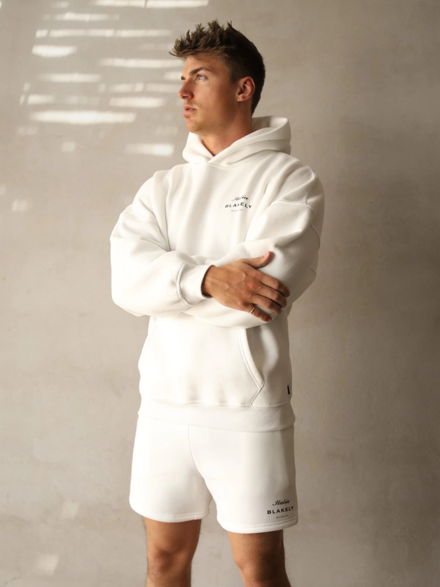 Part of this collection is our Italia Shorts in flat white, they have been crafted from a soft cotton blend with a slight relaxed fit. The shorts have an elasticated waistband and have been finished with our screen printed Italia graphic to the leg.