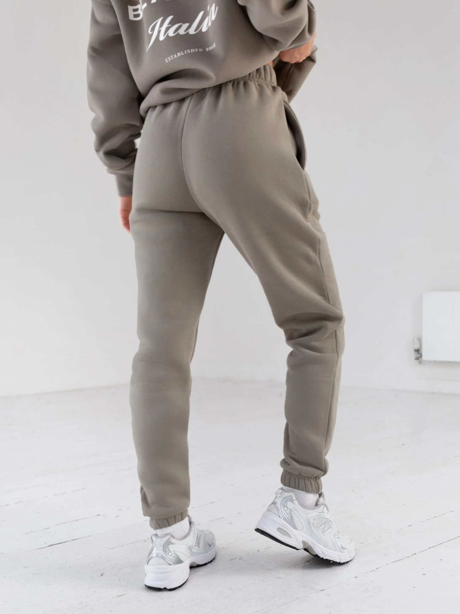 Our stone grey Italia Sweatpants feature a subtly oversized fit and are made from a soft cotton blend. They have an elasticated waistband and a side pocket on each leg. The left leg has been finished with our Italia screen-printed logo.