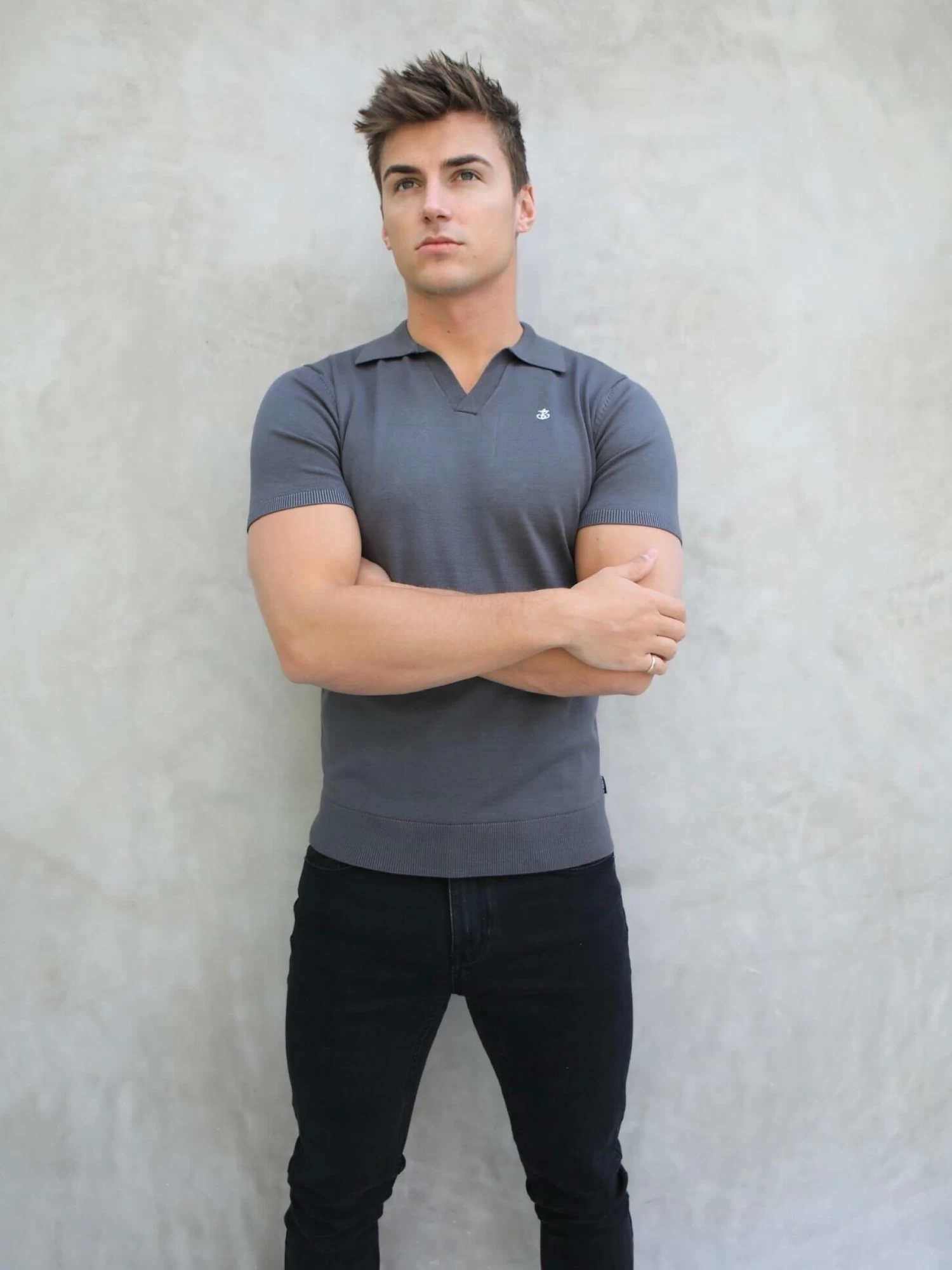 Our Oakland Polo is crafted from a premium blend and features a comfortable slim fit design. Additional details include its V-neckline and embroidered Blakely Anchor to the chest.