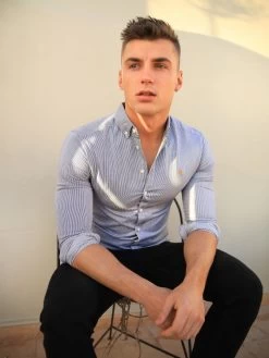 The Pesaro Pinstripe Shirt is made with soft stretch fabric and a pinstripe design. It also features our signature gold anchor embroidery and a summary-down collar detail, for a polished look and comfortable fit.