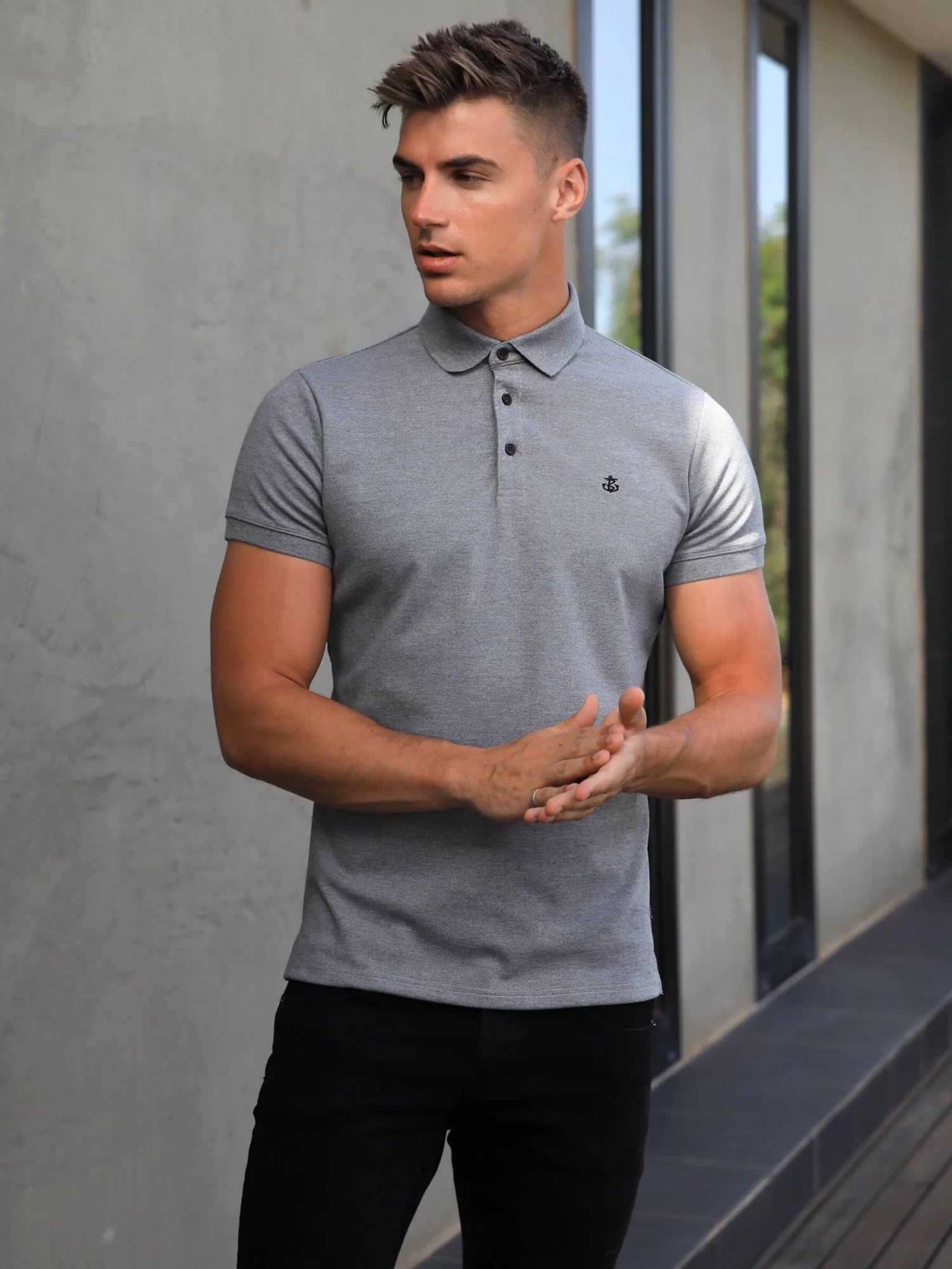 Our Sorrento Polo in Grey is a slim fit shirt made from a soft fabric blend. It features a summary-up open polo collar and is finished with an embroidered Anchor logo on the chest. Pair with the matching shorts for a complete look.