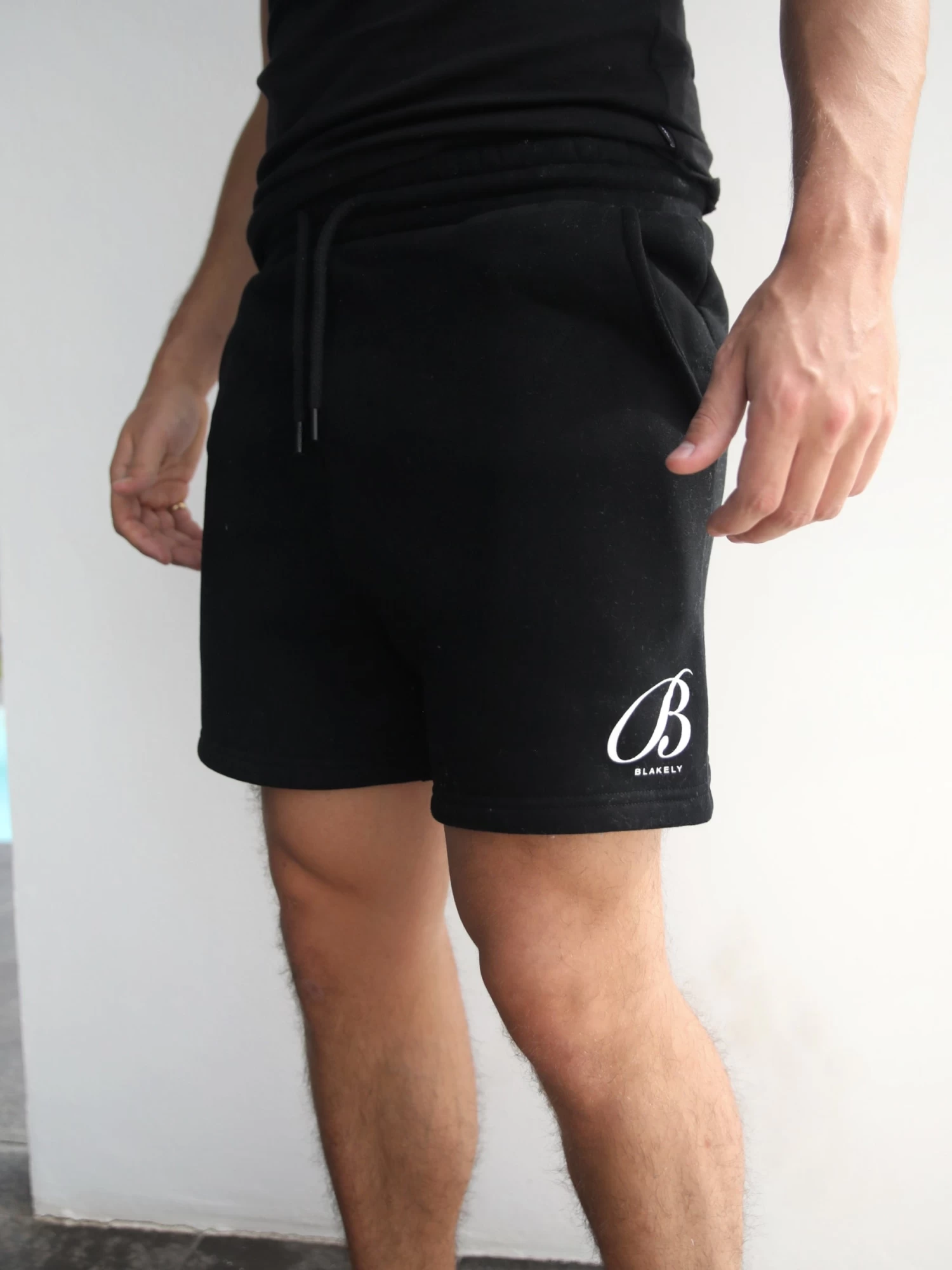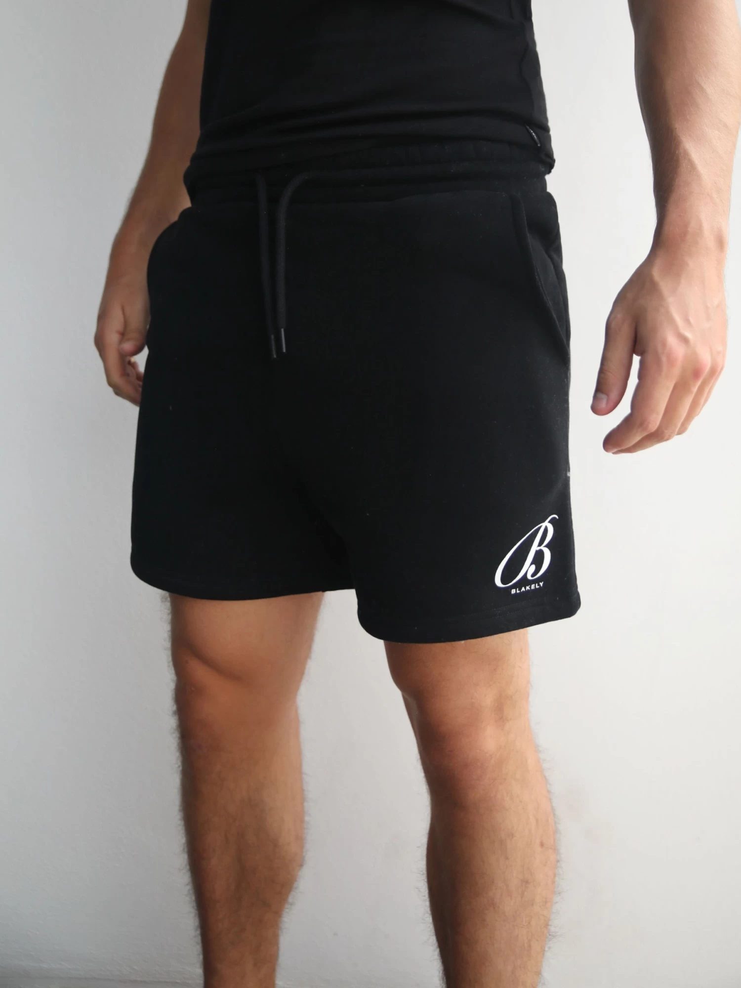The Vita Shorts in black are crafted from a cotton blend with a slightly relaxed fit. They have side pockets and an elasticated waist and are finished with a graphic print in flat white on the front.