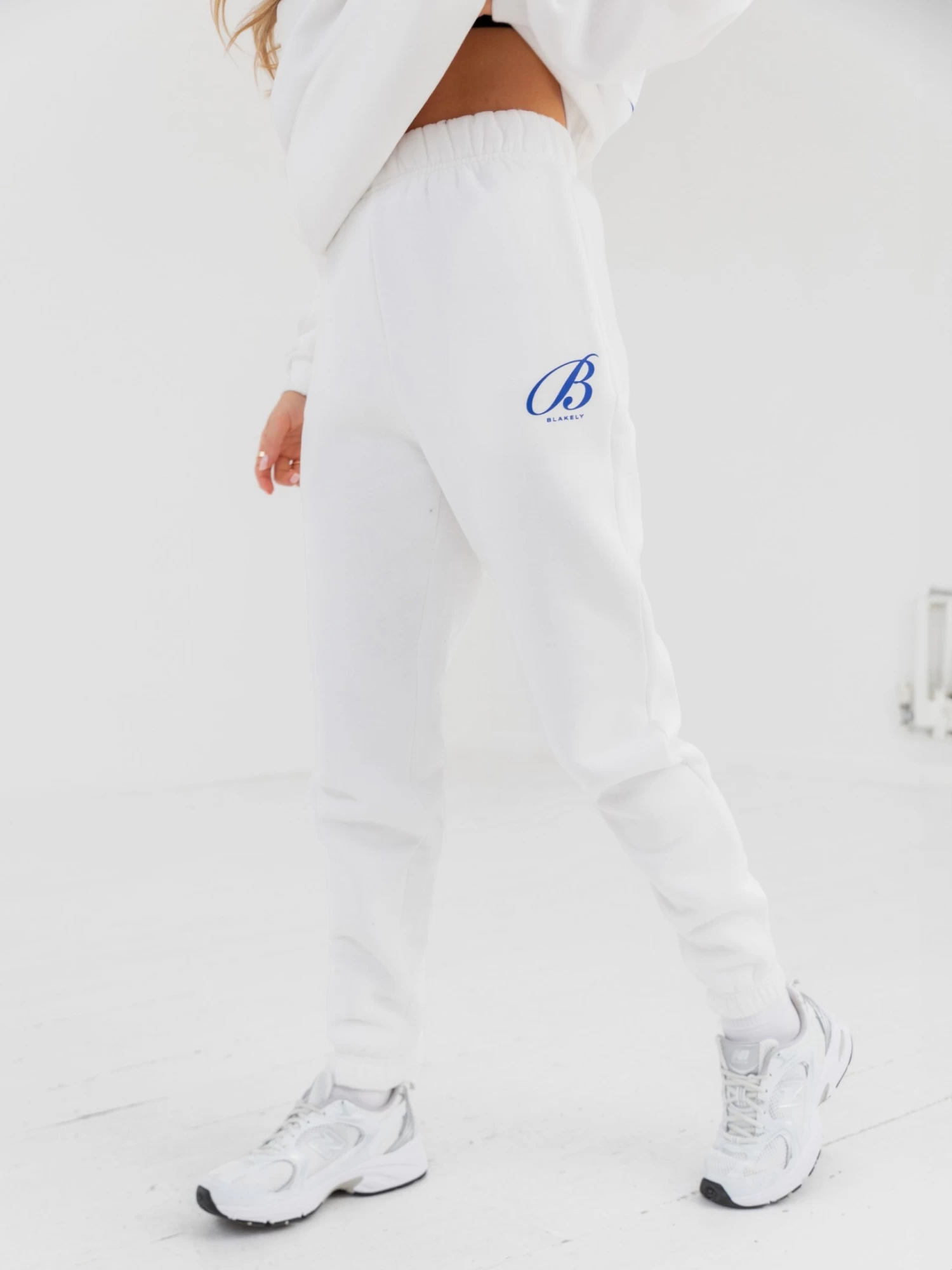The Vita Sweatpants in flat white are crafted from a cotton blend with a relaxed fit. With side pockets & elasticated waist, it is finished with a graphic print in cobalt on the front.